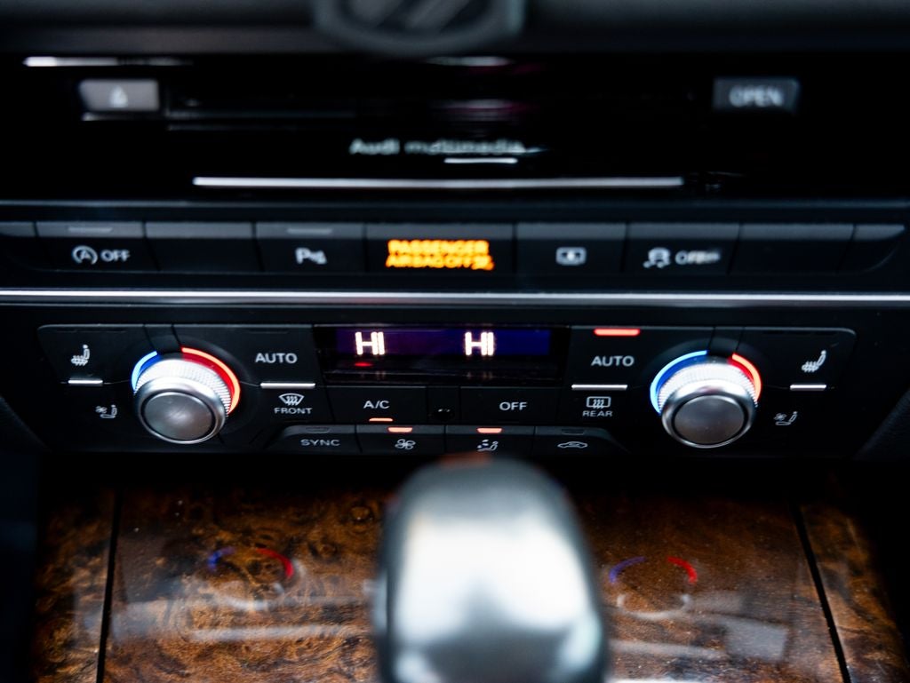 - Radio: Audi MMI Navigation Plus w/MMI System -inc: Audi connect w/Google Earth navigation, six-month trial connectivity period, 8-inch central display screen, control knob and buttons in center console, Operates climate control, central locking, instrument cluster, vehicle diagnostics, cellular phone, navigation, CD and radio functions, Also includes 2 USB ports w/AMI functionality (no AMI cable), Bluetooth® streaming audio, Bluetooth® wireless technology preparation for mobile phone, HD Radio Technology, MMI touch and Jukebox, SD card slots w/64GB capacity (dual slots), SiriusXM Satellite Radio w/90-day trial subscription, INRIX XD online traffic and voice control system (controls cellular phone, CD, radio and navigation), speech-to-text, Audi Sound System, 10 speakers including front center speaker and subwoofer in the rear, 180 watts and a 6-channel amplifier